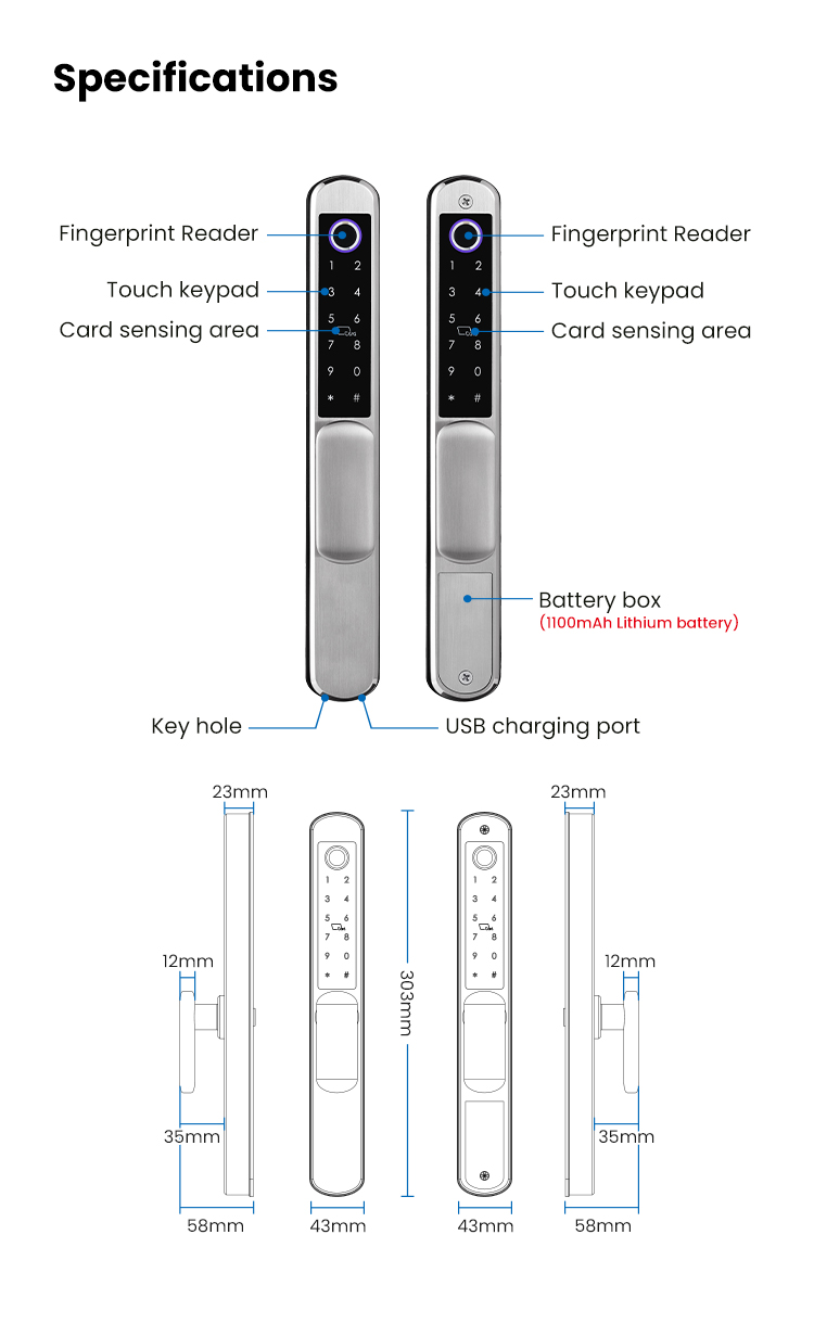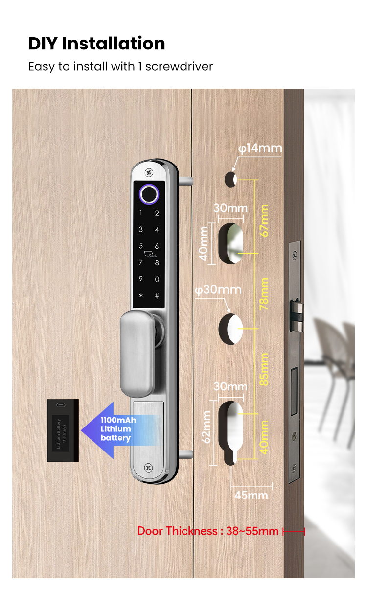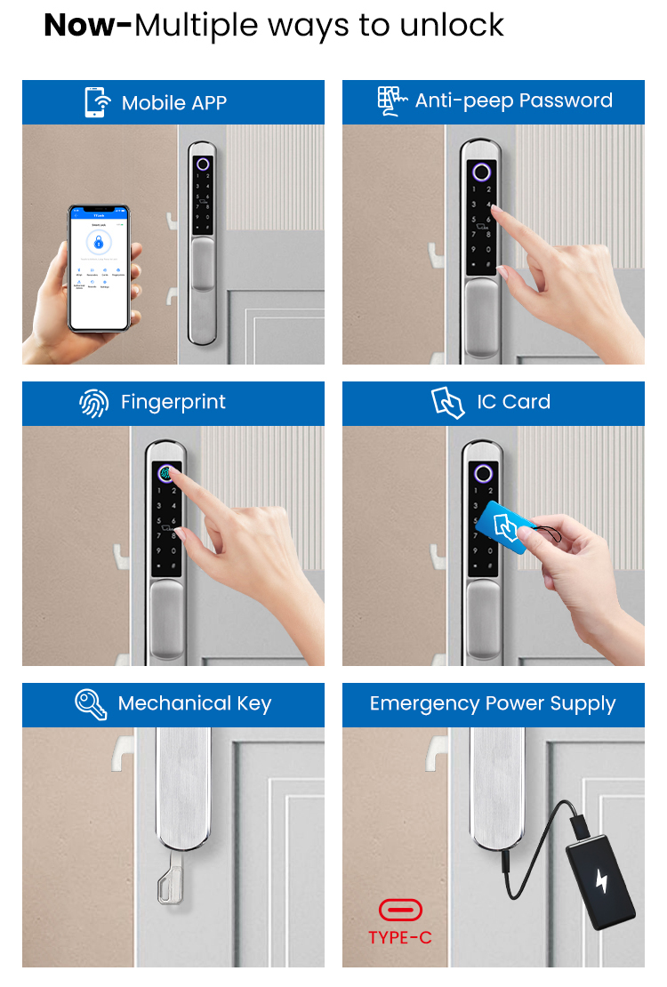 🔸 Unlocking Method: TTLOCK APP, Fingerprint, Password, IC Card, Key
