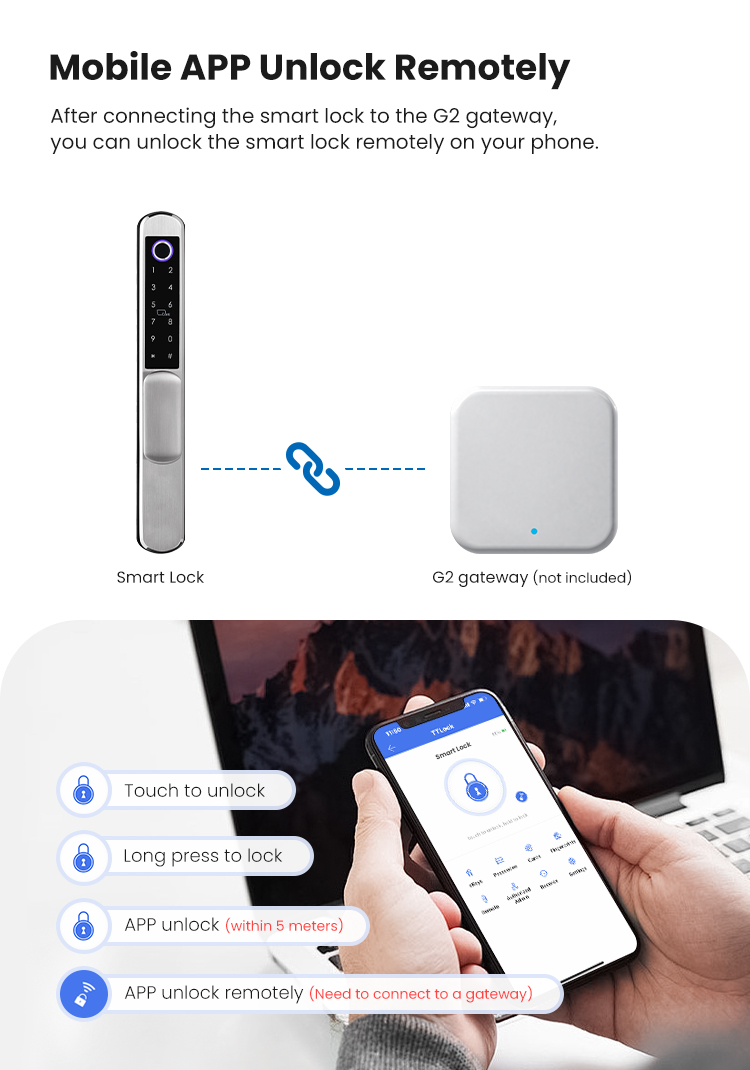➡️【Remote Unlocking】Can actively click on the app to unlock with one click (Remote unlocking requires connecting to a gateway)