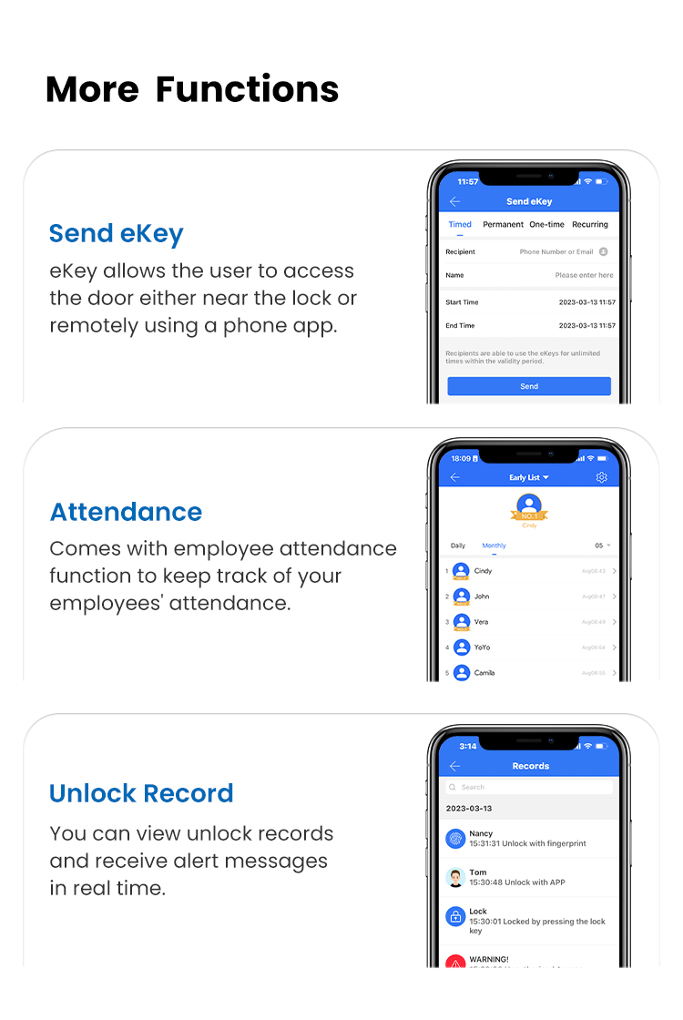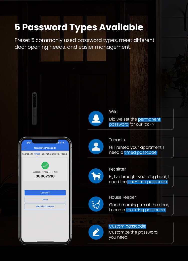 ➡️【Temporary Password】Supports multiple password settings, including temporary passwords, periodic passwords, and permanent passwords