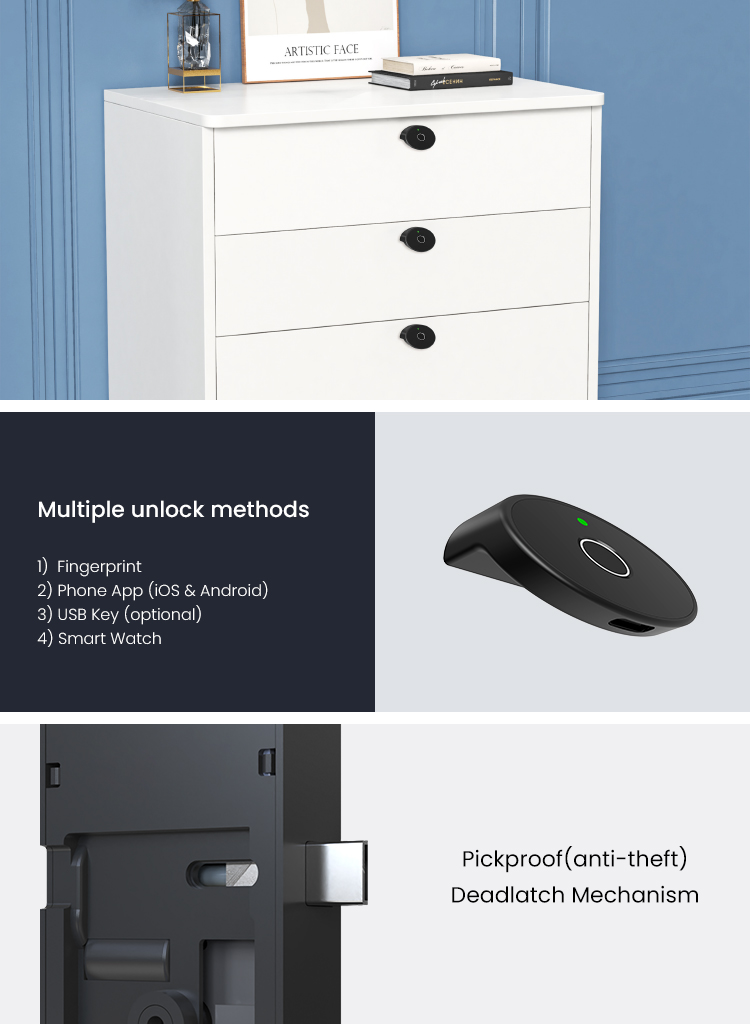Tropernic C200-F Fingerprint Cabinet Lock Multi Functional Drawer Lock NFC Smart Cabiner Lock with Public Mode