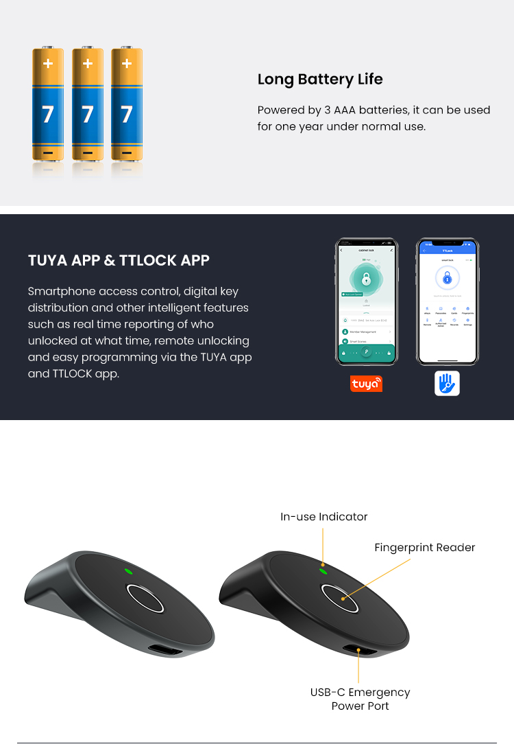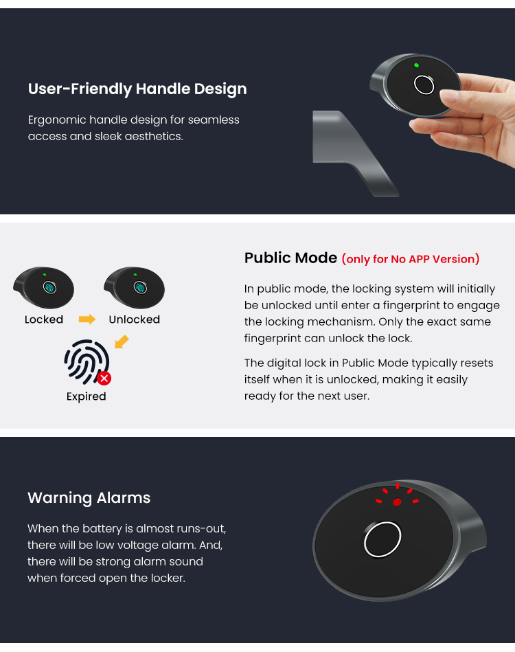 ➡️【Alarm Reminder】An alarm will sound when the battery is low, unlocking fails multiple times, or there is a forced removal attempt.