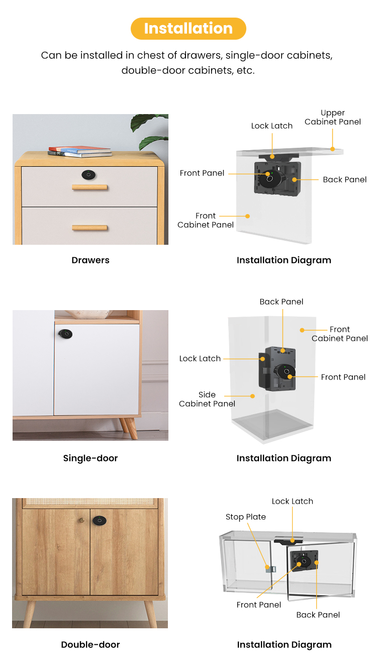 🔸 Application: Lock Suitable for Drawer/Cabinet/Bedside Table/Sauna Cabinet