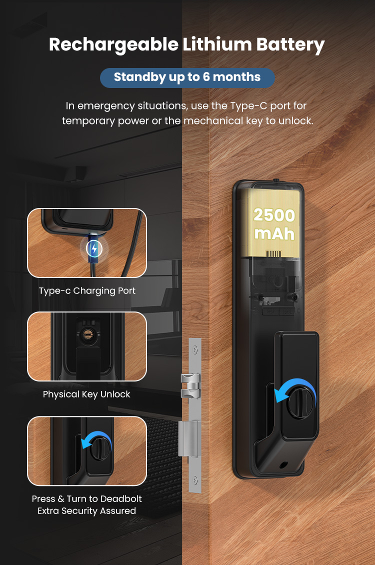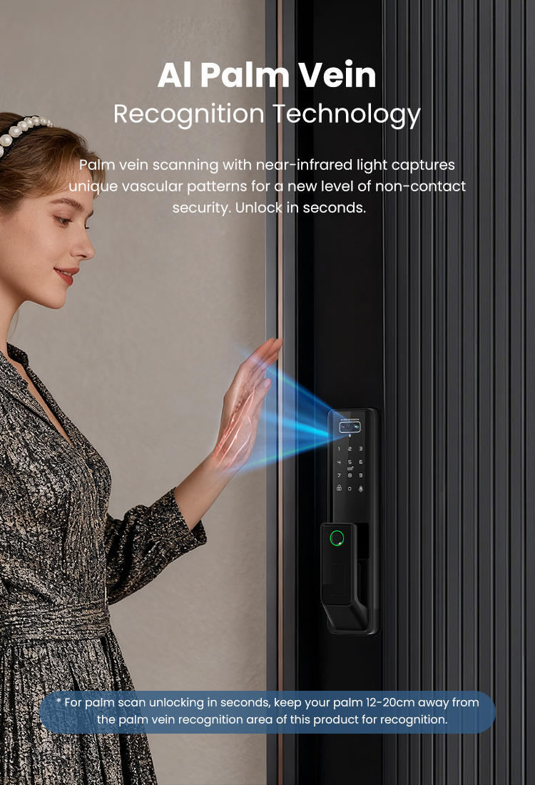 ➡️【7 Unlocking Methods】Supports multiple unlocking methods, including APP/Face/Palm/Fingerprint/IC Card/Password/Key unlock