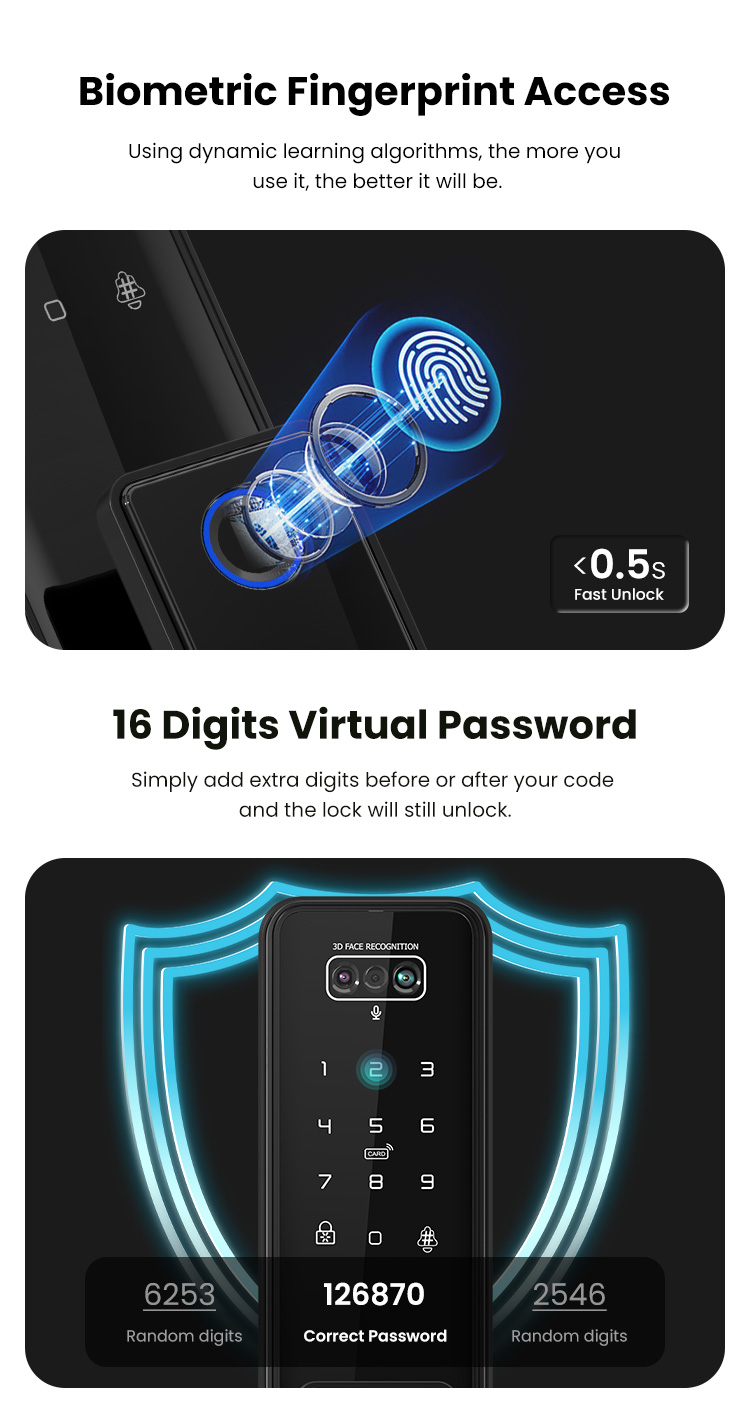 ➡️【Anti Peeping Password】Can enter any number before and after the correct password to avoid password leakage