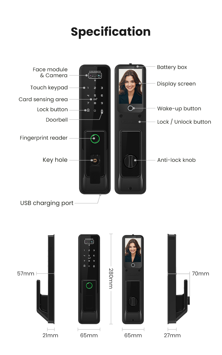 🔸 Unlocking Method: Tuya APP, Face, Palm, Fingerprint, Password, IC Card, Key