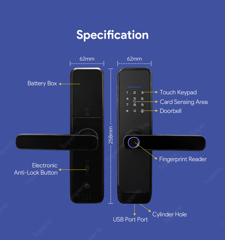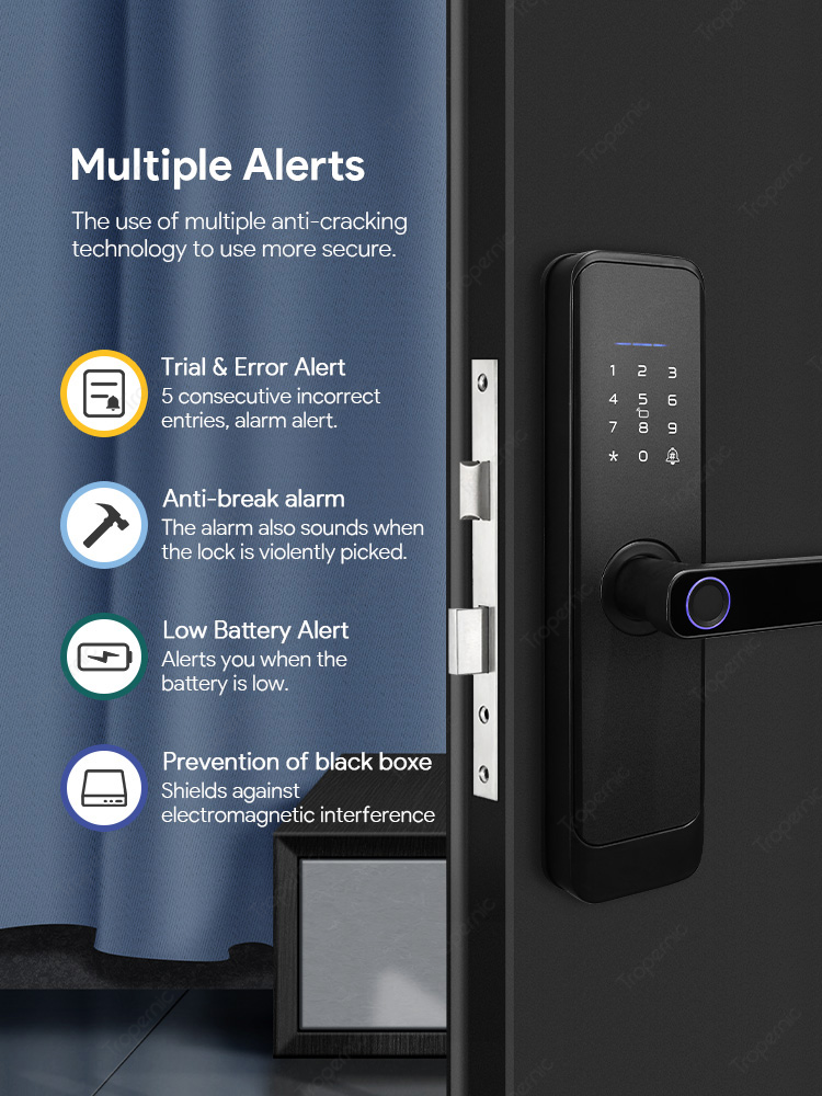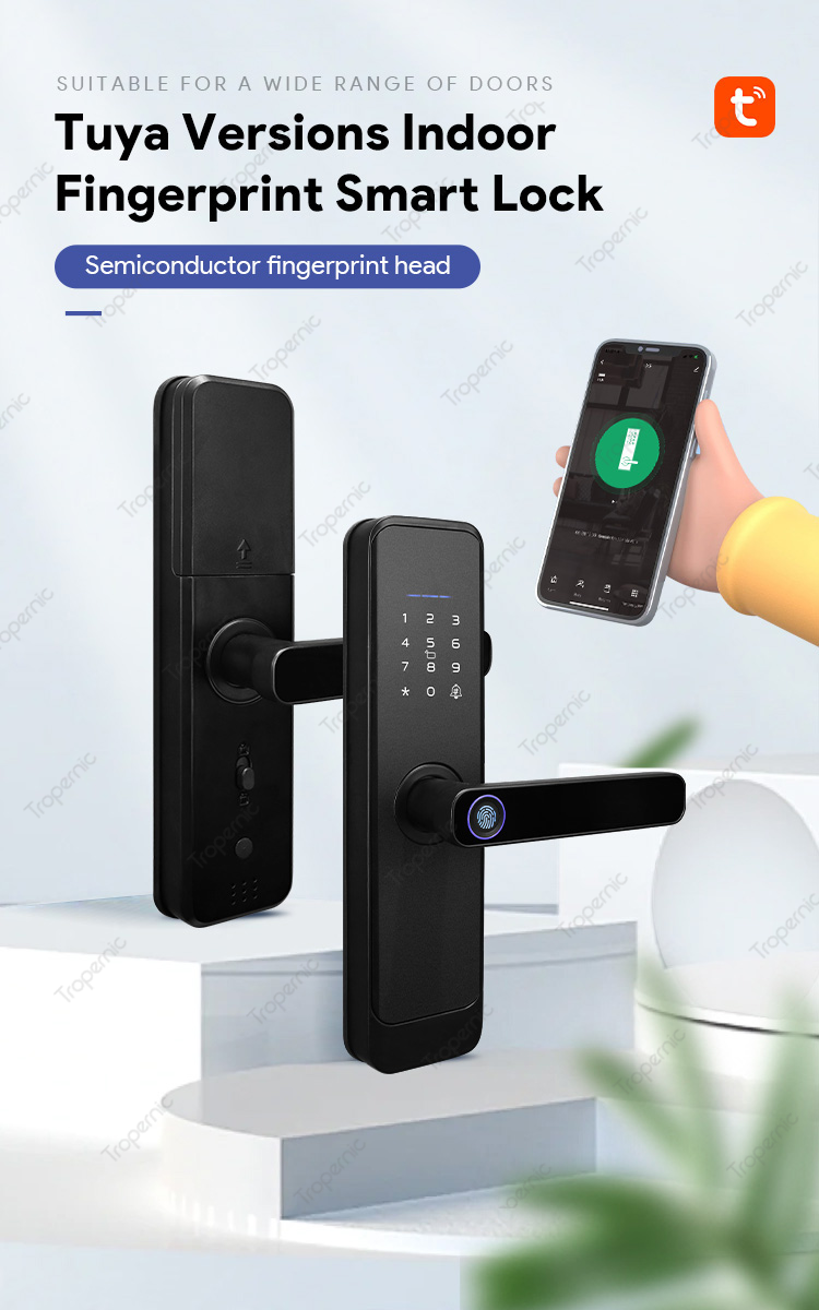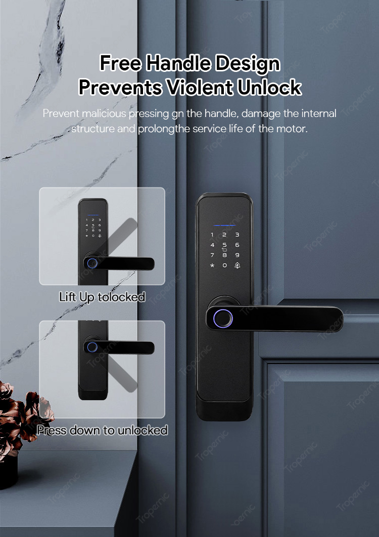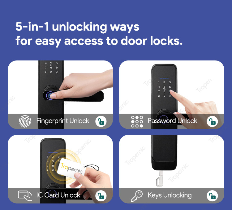 Tropernic H03 5 In 1 Tuya Smart Door Lock with Doorbell Password Digital Lock with Electronic Anti-Lock Fingreprint Kunci Pintu Rumah for Home