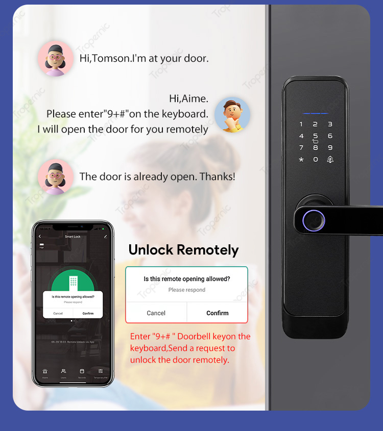 ➡️【APP Unlock】When a visitor presses the doorbell, the Tuya APP will receive an unlock request, and the administrator can then approve or deny the unlock in the APP.