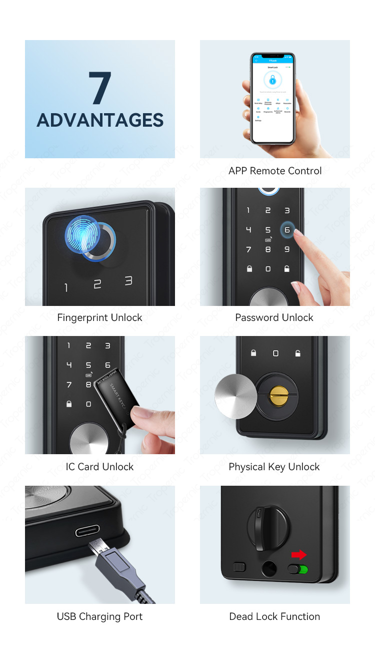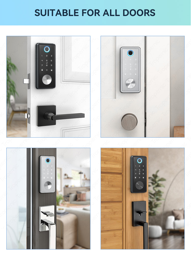 Tropernic T1 Tuya Smart Door Lock WiFi Remote Unlock Digital Password IC Card Biometric Fingerprint Unlock Fully Automatic Electric Deadbolt