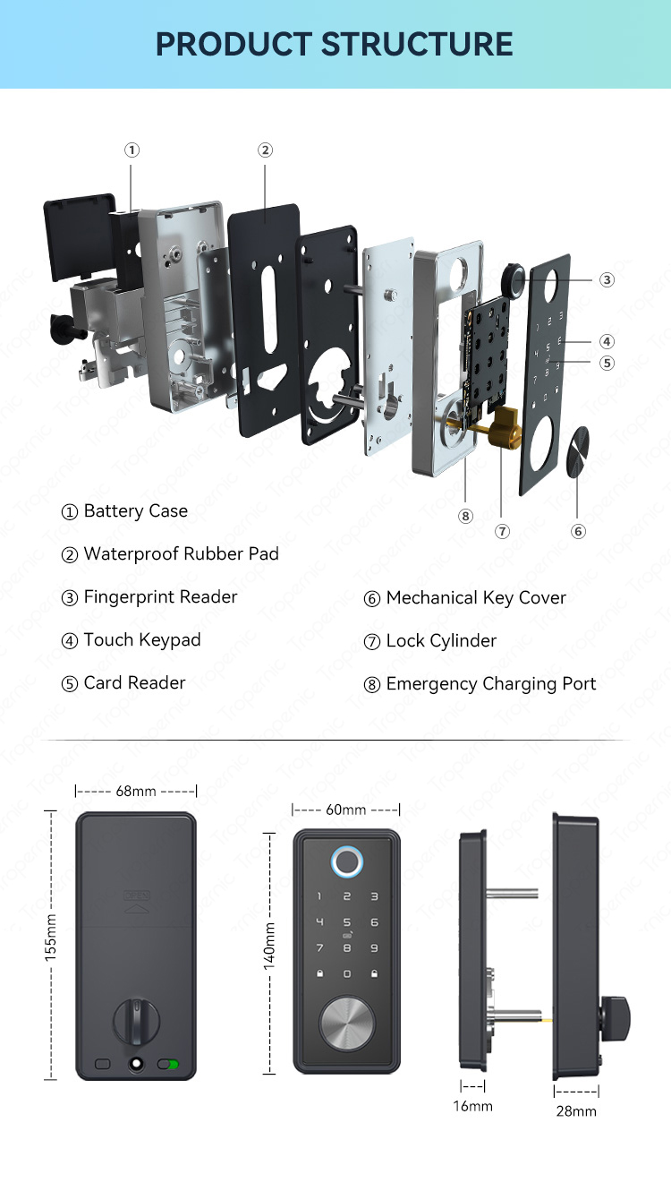 🔸 Unlock Mechanism: APP/Fingerprint/IC Card/Password/Key