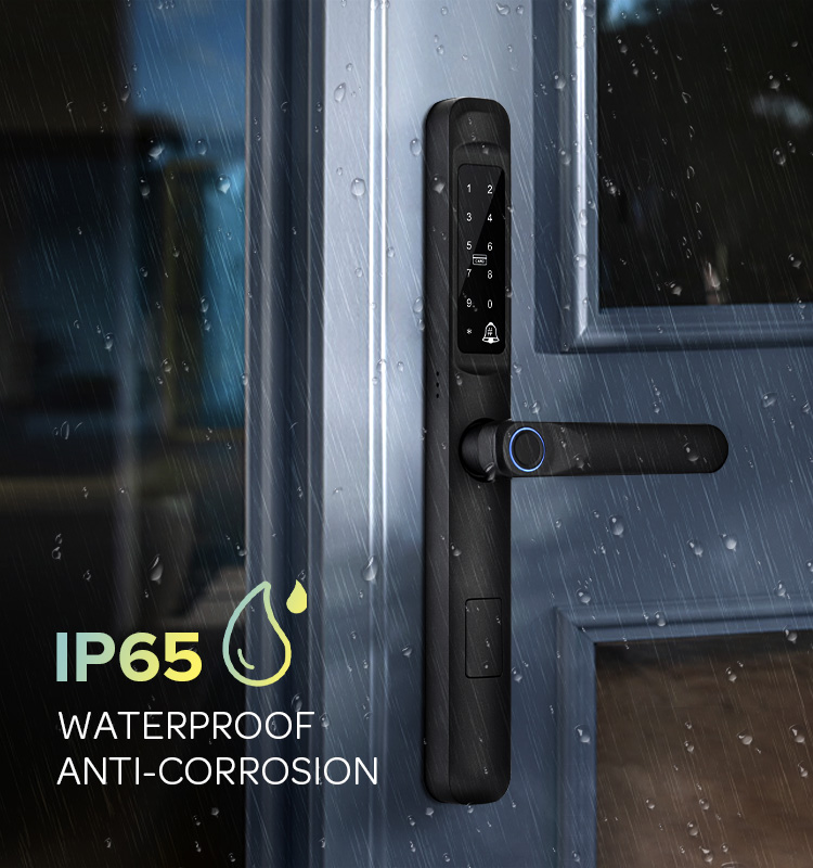 Tropernic A6 5 In 1 Tuya Smart Door Lock with Doorbell Function Waterproof Fingerprint Sliding Door Lock Zinc Alloy Electronic Lock Digital Password Lock For Aluminum Door