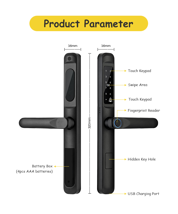 🔸 Unlock Mechanism: Tuya APP/Fingerprint/IC Card/Password/Key
