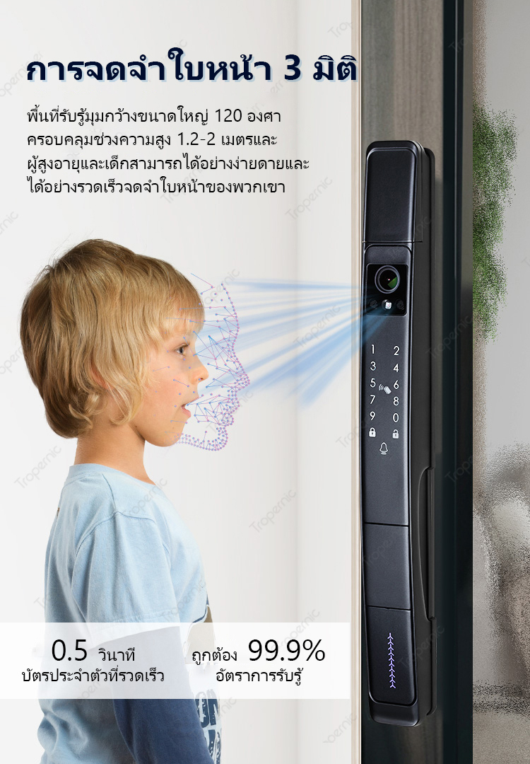 Tropernic A216 Tuya Smart Door Lock with Security Camera 3D Face Recognition Two-Way Intercom Fully Automatic Digital Lock for Sliding Doors Fingerprint Password Unlock with Doorbell