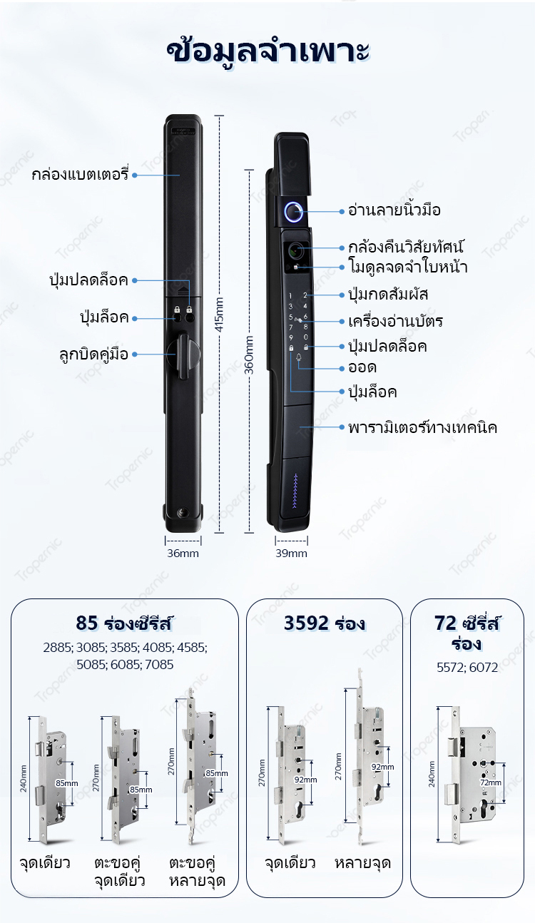 🔸 Unlocking methods: App, Face, Fingerprint, Passcode, IC card, Key